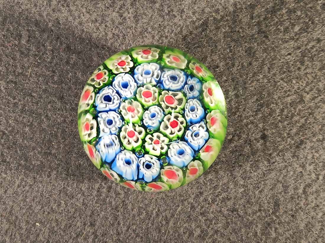 Kleiner Glas-Briefbeschwerer um 1900. Sehr guter Zustand. D. ca 6 cm.