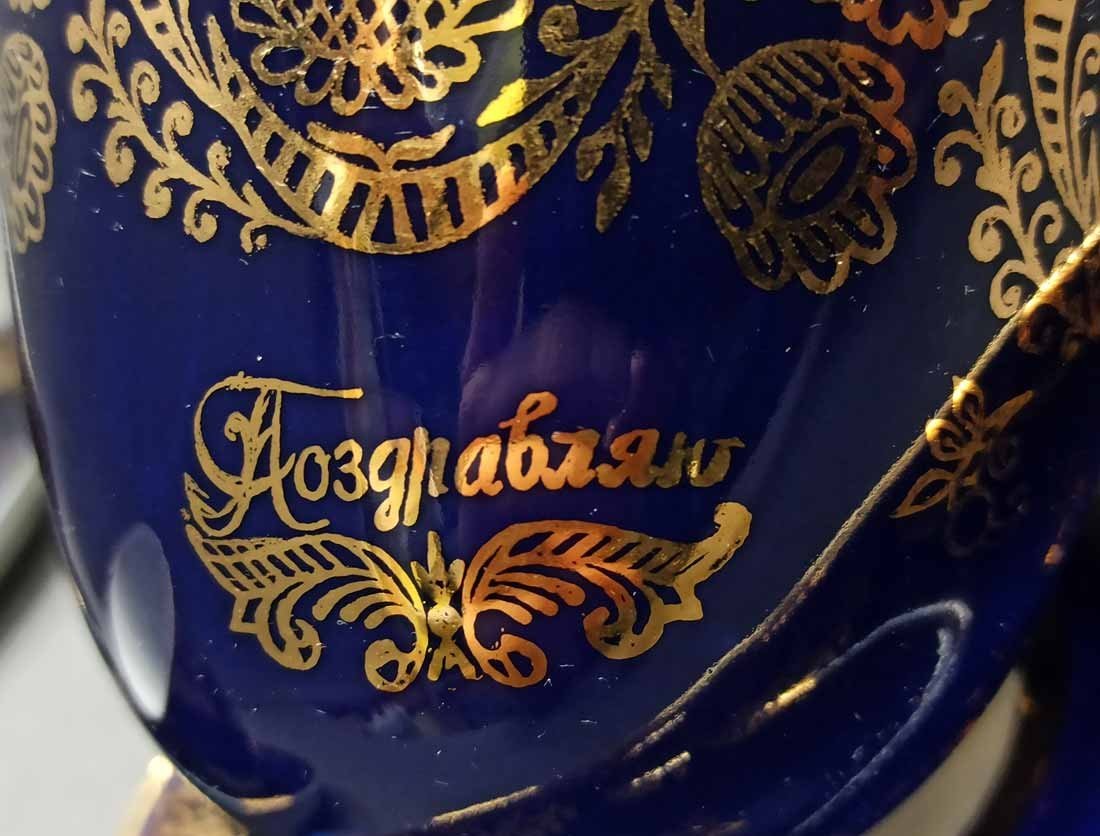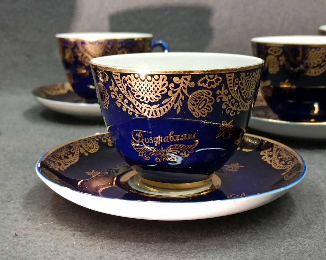 5x(auch einzeln) Lomonosov St.Petersburg, Поздравляю - Glückwunsch, Kobaltblau+Gold, Glückwunsch Tassen auch einzeln je 20,- Euro