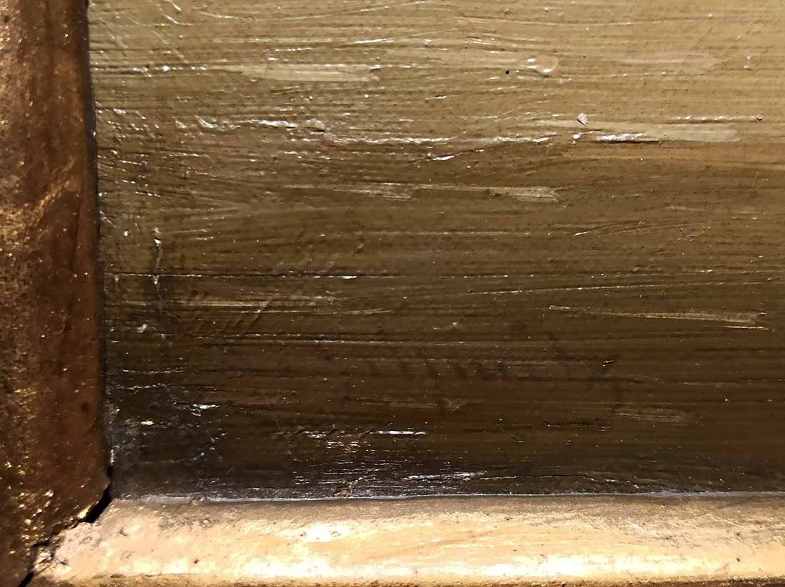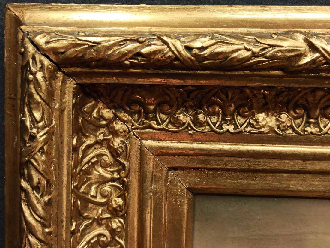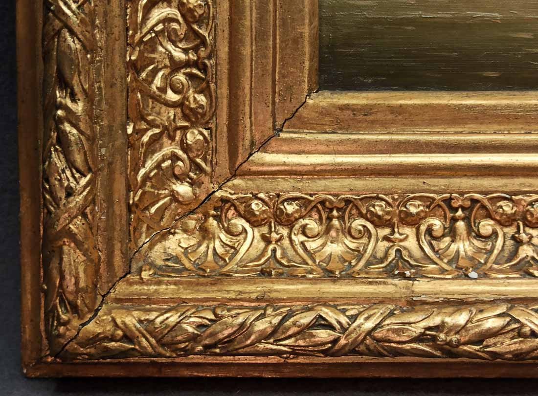 Landschaftsgemälde, "Gebirgssee mit Boot und Kapelle" 2. Hälfte 19. Jahrhundert. Öl auf Leinwand auf Keilrahmen, im originalen Zeittypischen Gold-Rahmen. Li. u. undeutlich signiert: ? Schmitz ?. B. x H. 45/55 cm x 32,5/42,5 cm.
