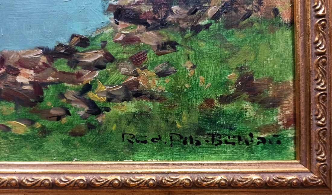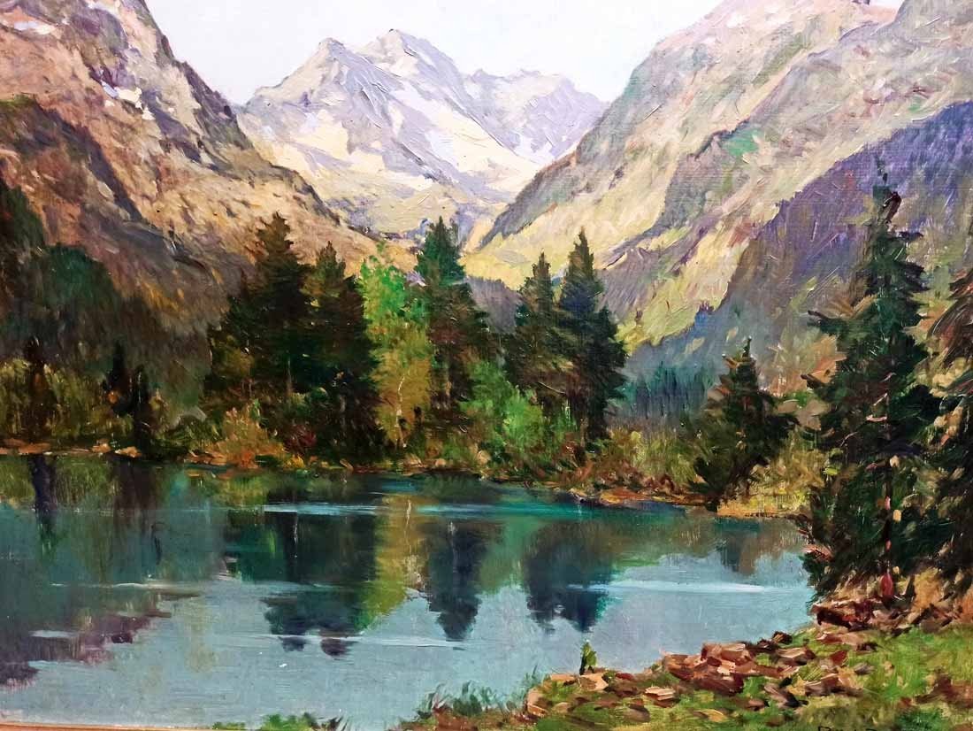 Pilz - Bühlau, Rudolph. "Alpenlandschaft mit Bergsee", Öl auf Malpappe, gerahmt. Links unten signiert "Rud. Pilz-Bühlau". B. 58/65 cm, H. 48/55 cm