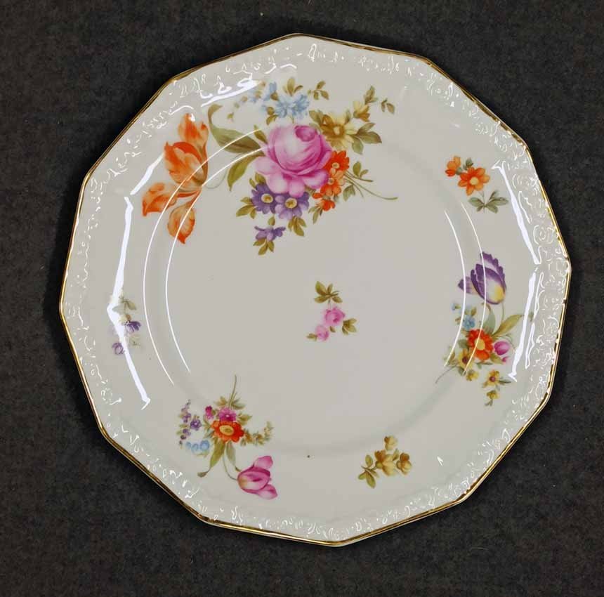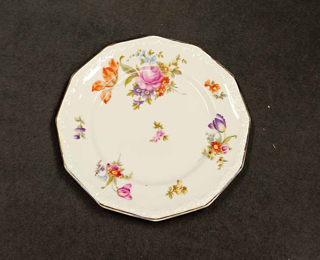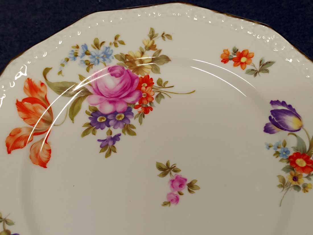 Rosenthal, 1x Speiseteller Maria mit schöner Blumenmalerei und Goldrand. Schöner Teller in sehr gutem Zustand, ohne Beschädigungen. Flacher Speise Teller D. 24,5 cm. Manufaktur Marke von Rosenthal auf der Unterseite.