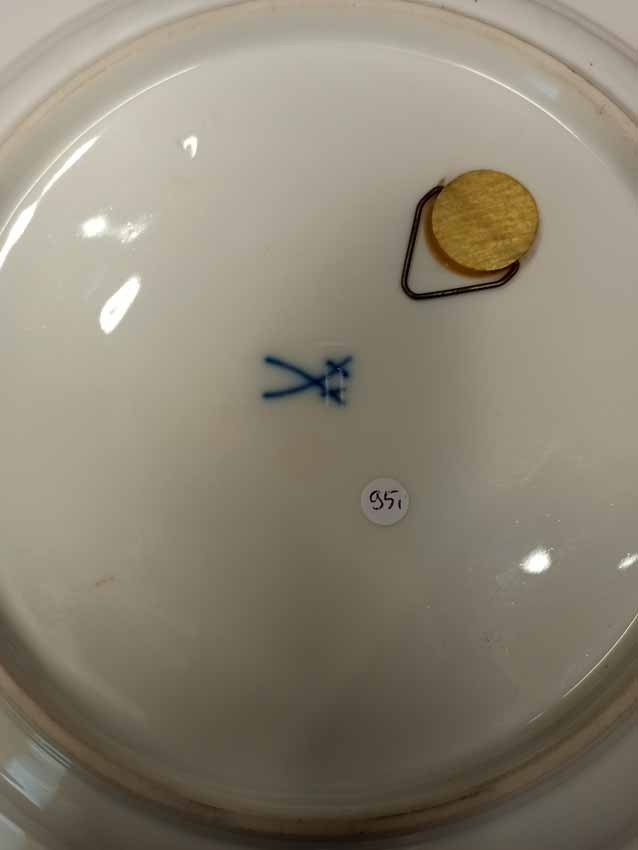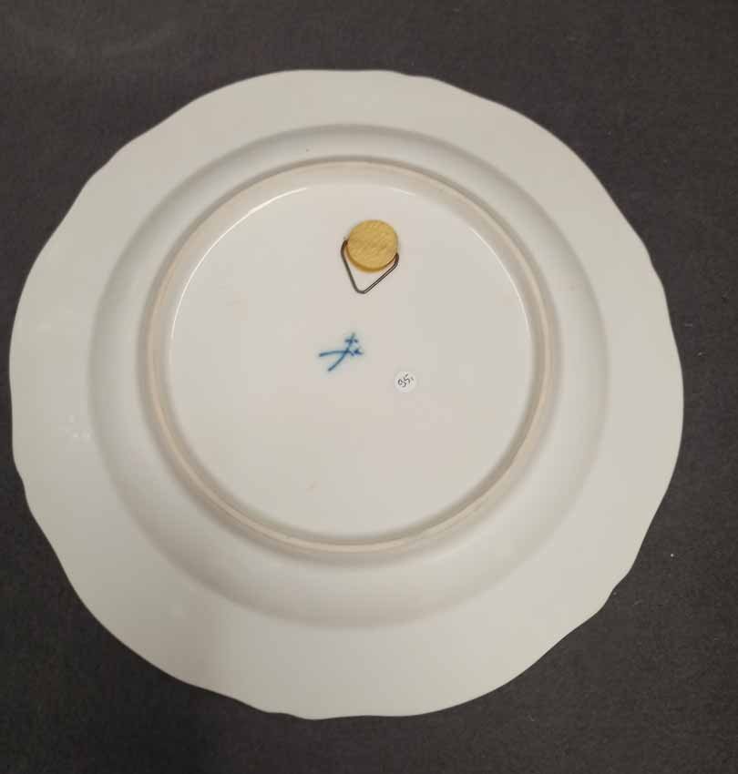 Meissen, Kupfergrüne Blumenmalerei mit Neumarseille Reliefrand und reich gezierter Goldmalerei am Rand.Sehr guter Zustand ohne Beschädigungen. D. 25,5 cm.