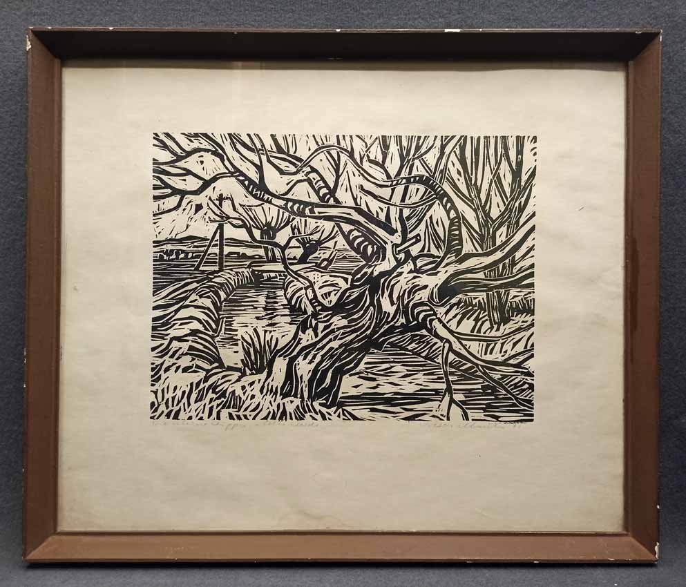 Werner Haselhuhn, Holzschnitt "Die kleine Wipper" .  Li. u. bezeichnet und re.u. Signiert "W. Haselhuhn"  und datiert. Blatt 50 x 60 cm, Stock 30 x 40 cm. Im zeittypischen Rahmen.