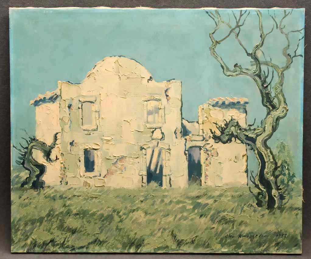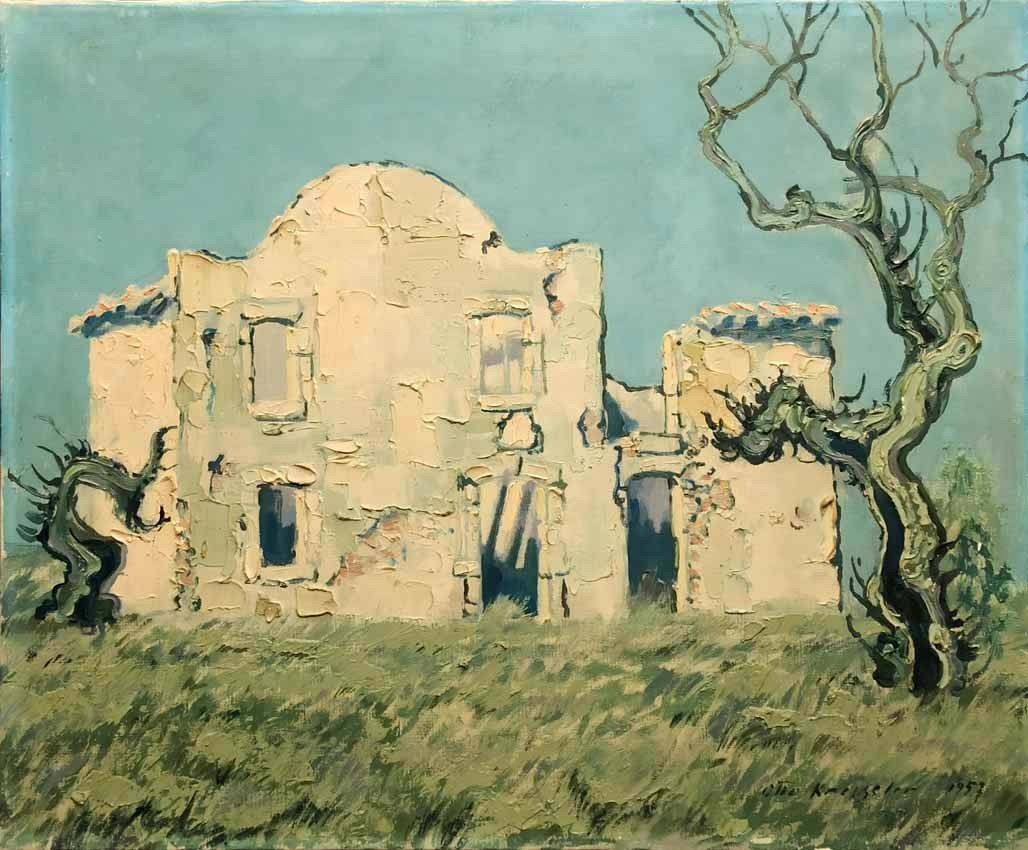 Kreiseler, Otto; Verlassenes Haus in Südeuropa. 1957. Öl auf Leinwand, re. u. sign. und dat. 50,5 x 60 cm. Ohne Rahmen.