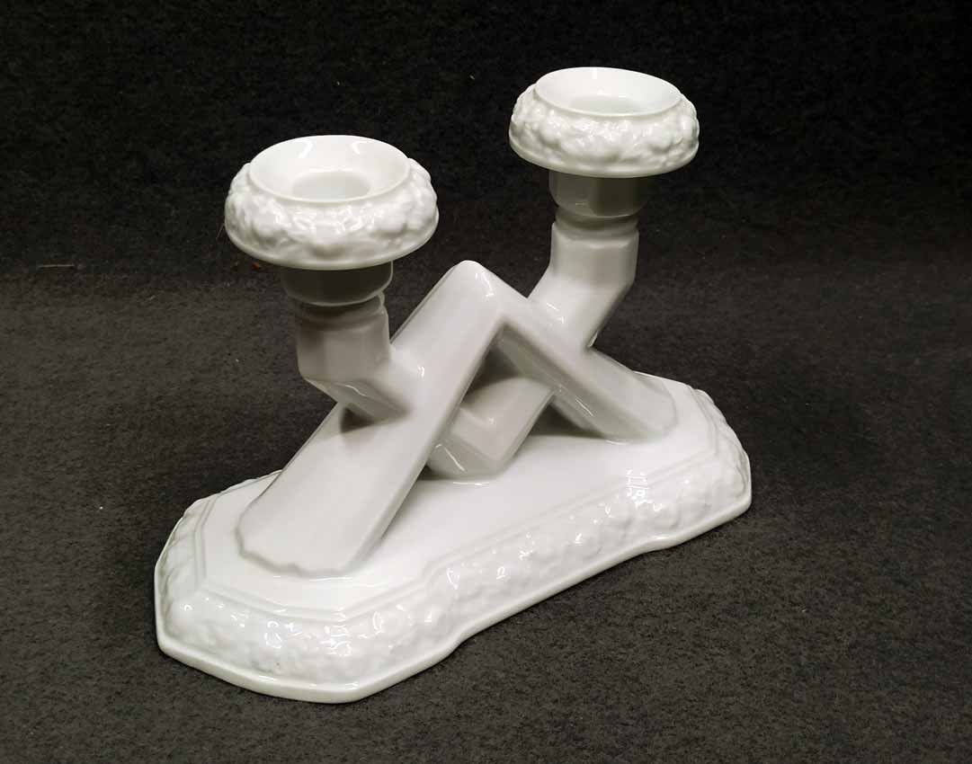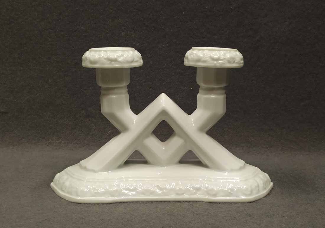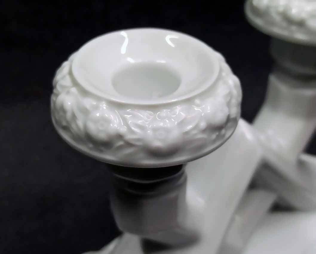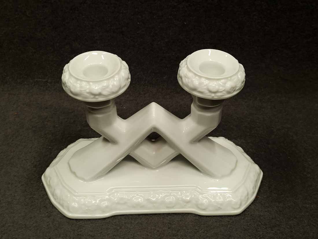 Reserviert! Kerzenleuchter Rosenthal, weiß mit Reliefkanten, zweiflammig. Gemarkt: Rosenthal Classic. Sehr guter Zustand ohne Beschädigugen. H. 14,5 cm, B. ca 23 cm