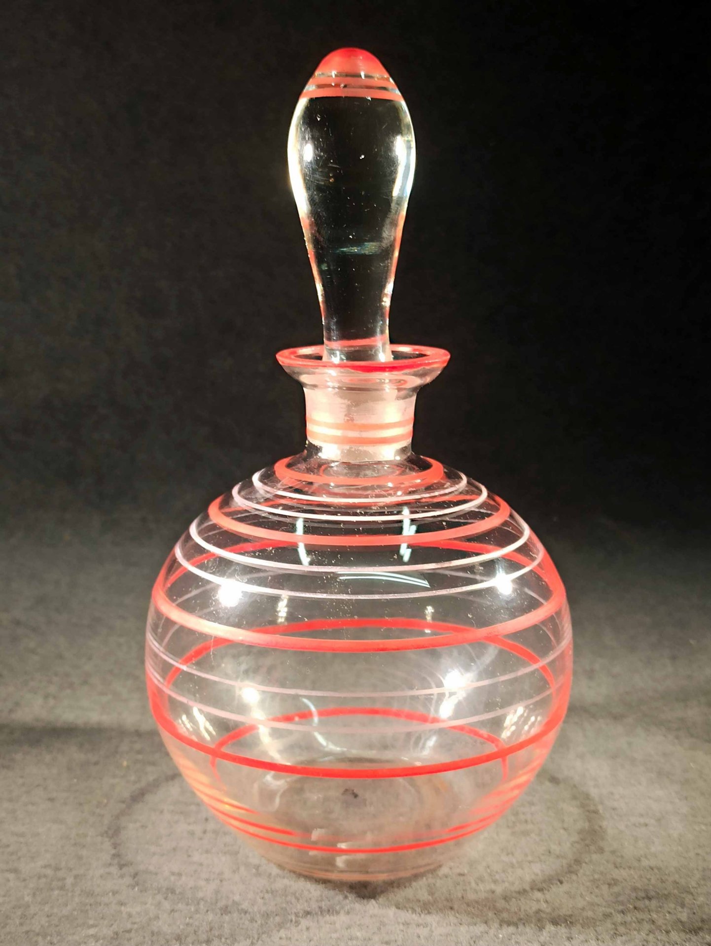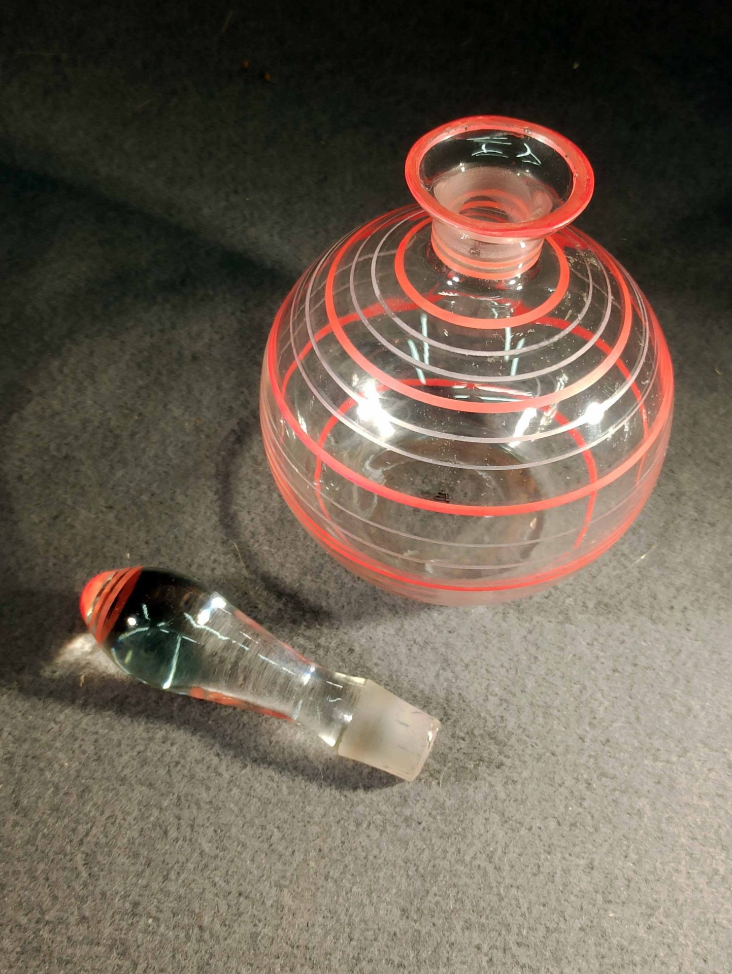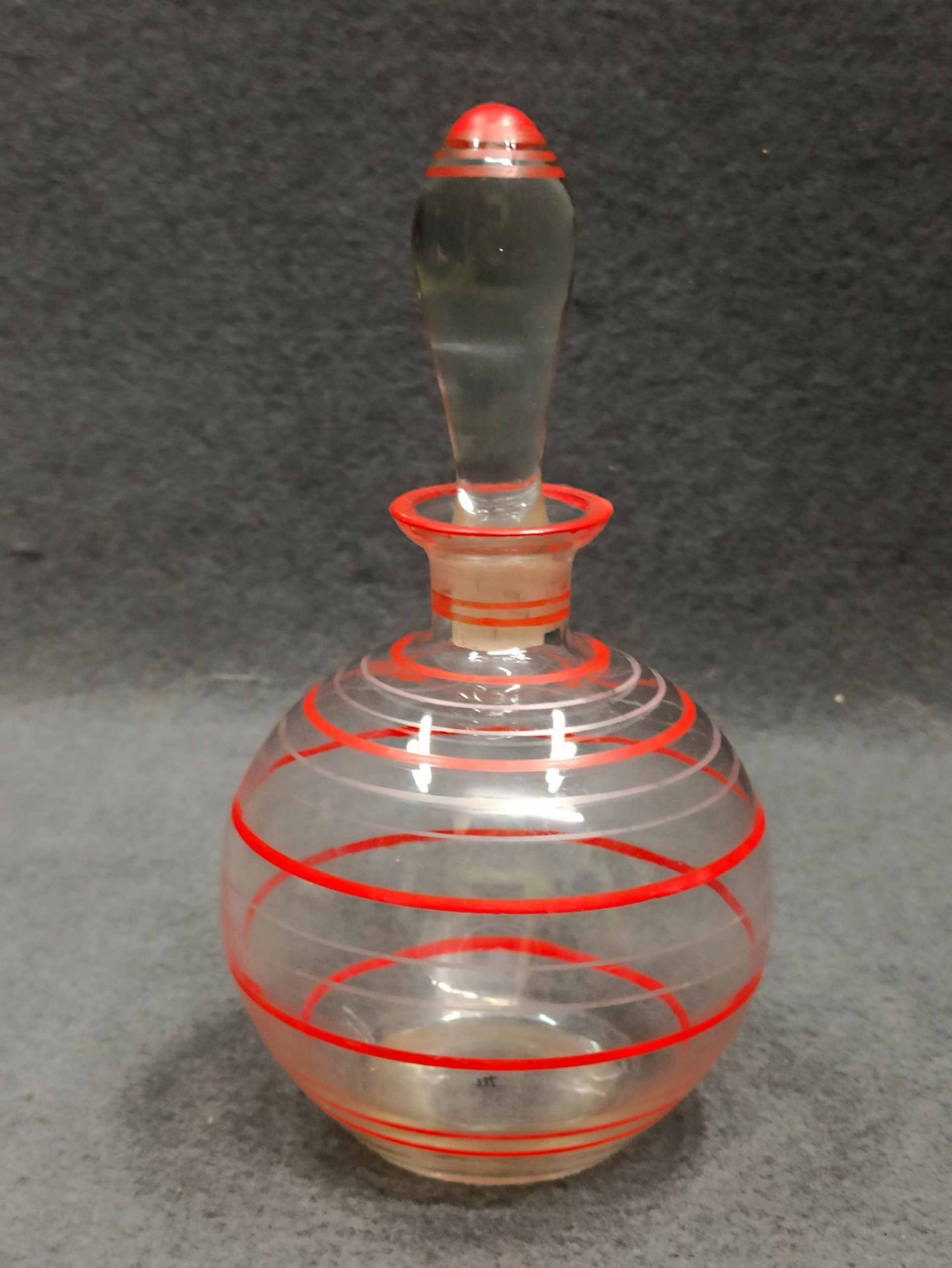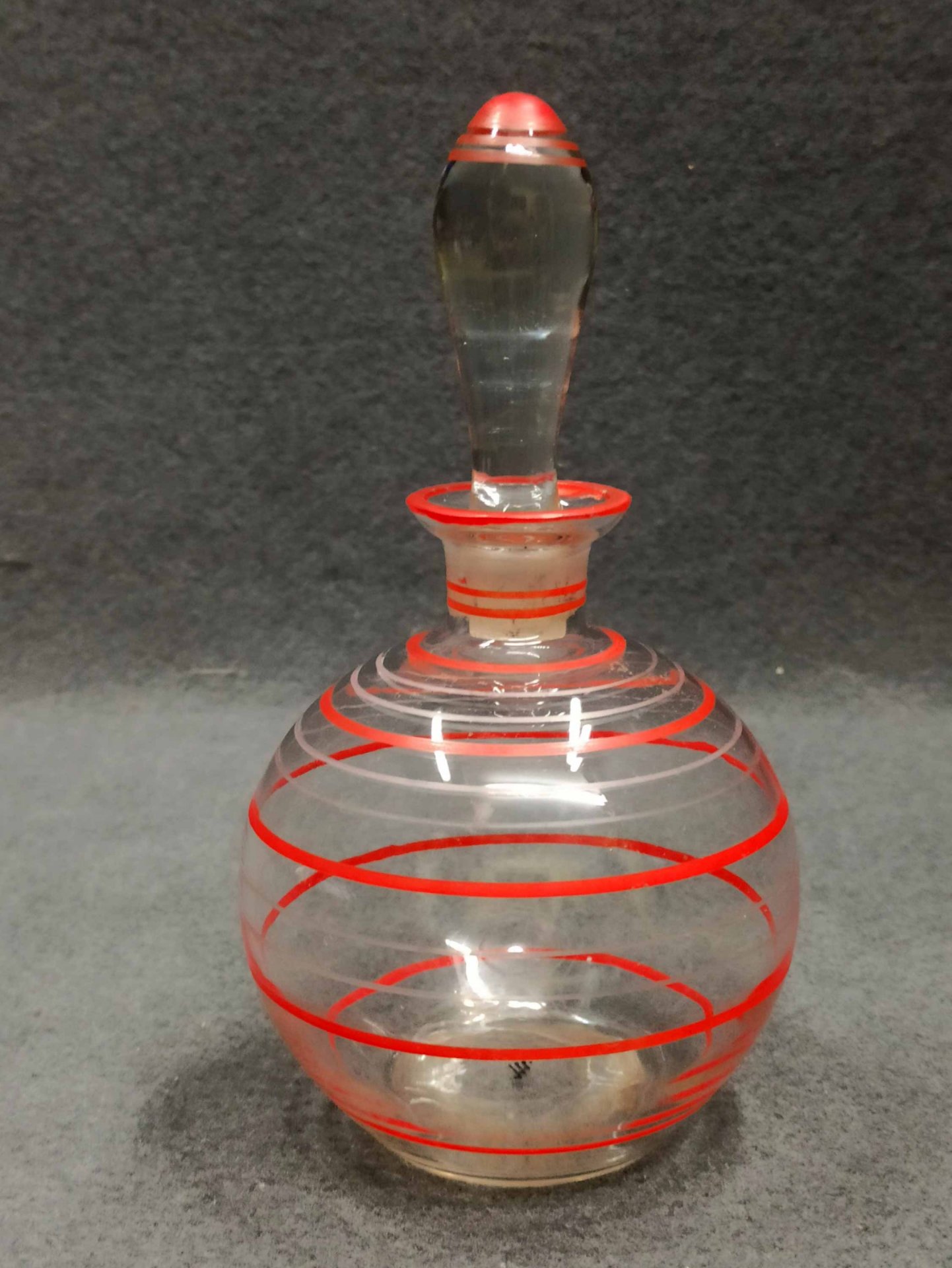 Karaffe mit Emailledekor, um 1930 bis 50er Jahre. Sehr guter Zustand ohne Beschädigungen. H. 20 cm.