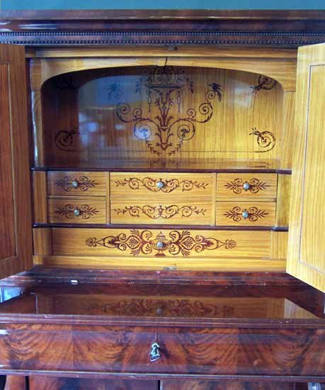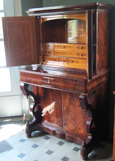 Außergewöhnlicher Schreibsekretär aus der Spätbiedermeierzeit um 1840. Sehr hochwertige Ausführung.