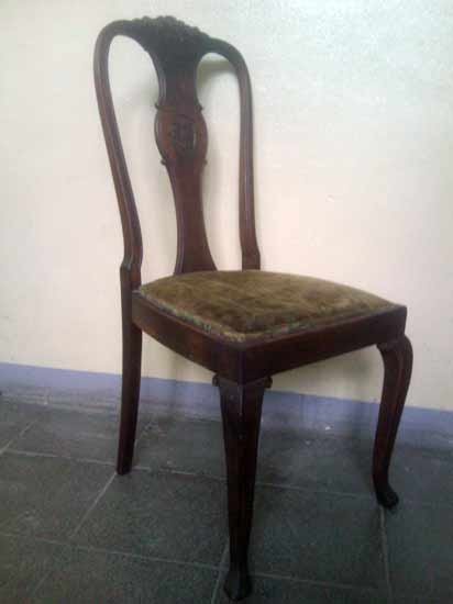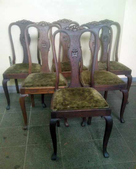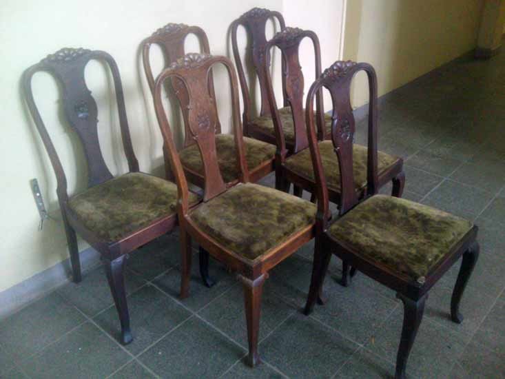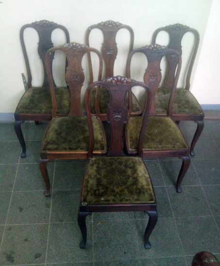 Satz von sechs Stühlen um 1910. Reparaturbedürftig.
