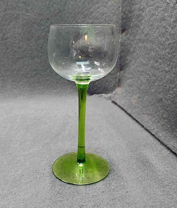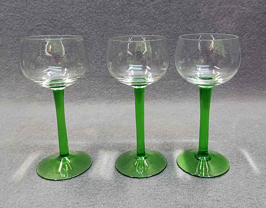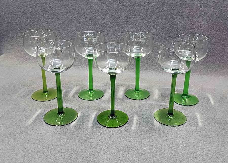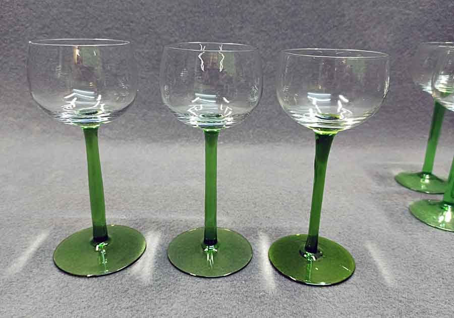 Verschieden Gläser, Weingläser mit grünem Stiel. H. ca 17 cm. Preis je Glas 5,- Euro.