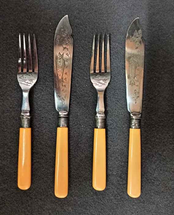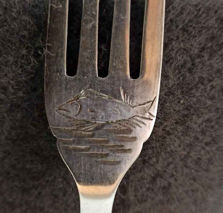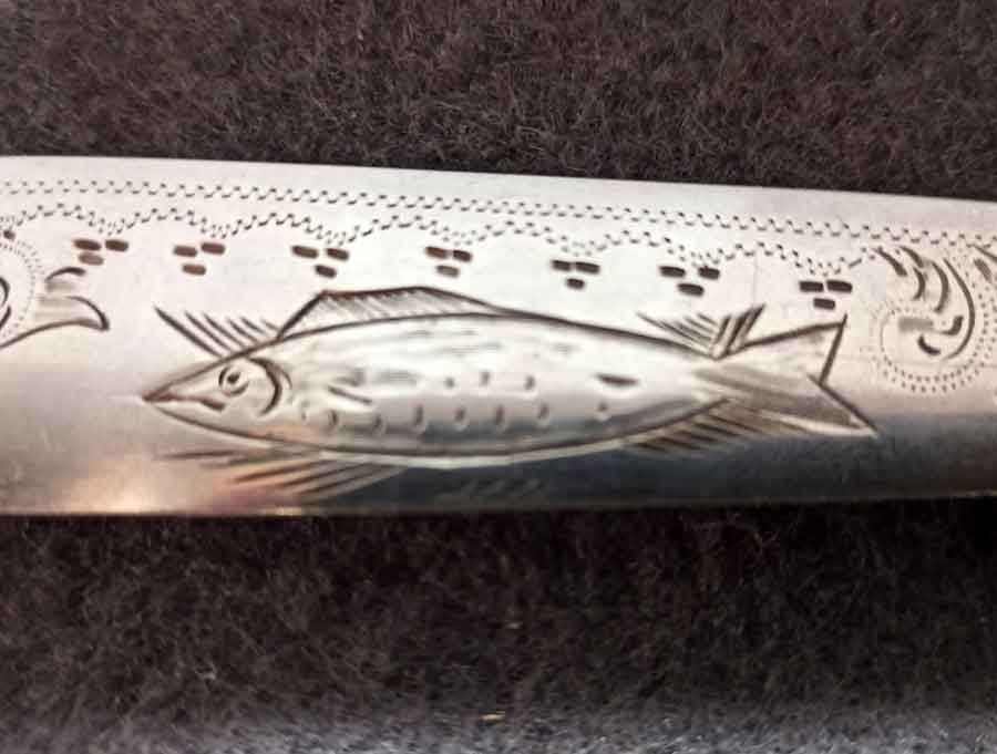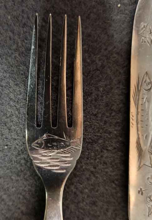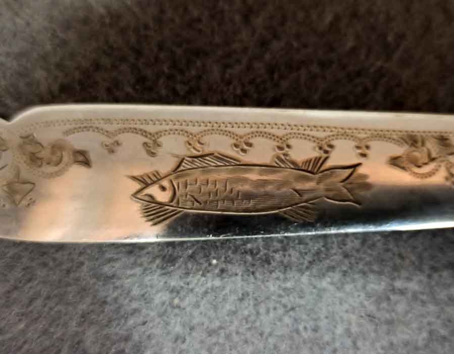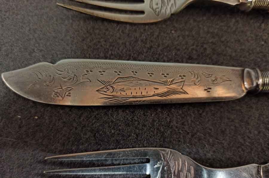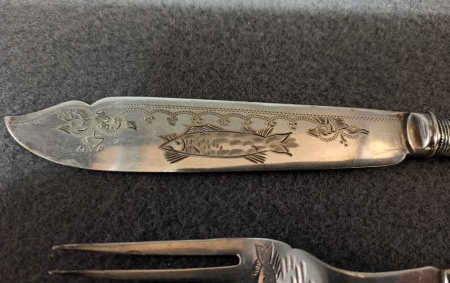 Fischbesteck Anfang 19.Jh., Silber mit Elfenbeingriffen. Feine Ziselierungen, Fischdekor.