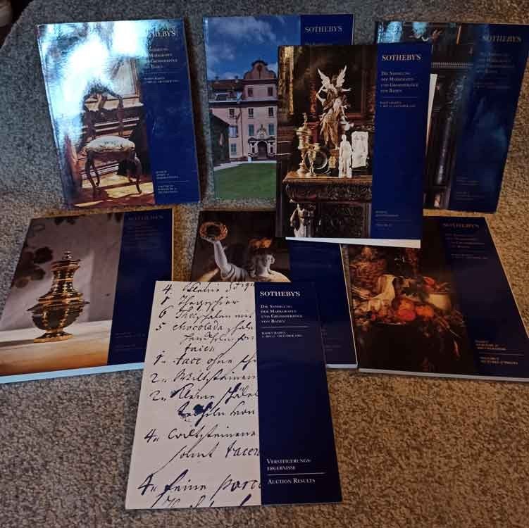 Sothebys, Die Sammlung der Markgrafen und Großherzöge von Baden. Komplett 7 Bände mit Ergebnisliste im Schuber. Gute Erhaltung.
