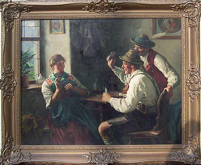 Emil Rau *1858 Dresden +1937 München;  Beim Kartenspiel in der Stube.