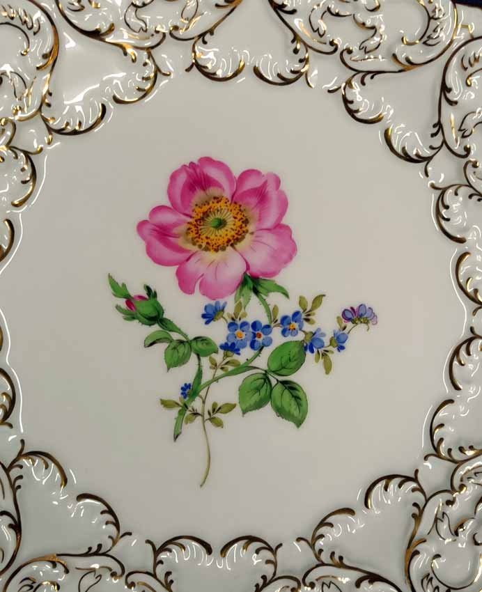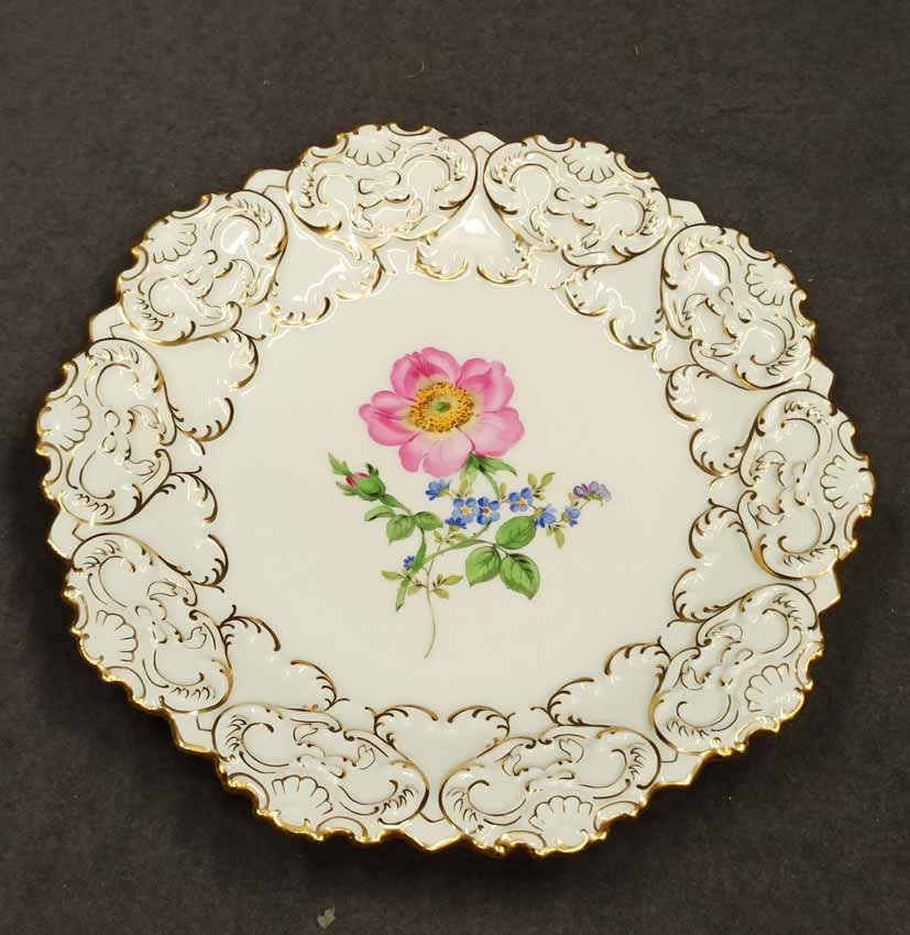 Reserviert! Meissen, Prunkteller mit Blumenmalerei und Reliefrand