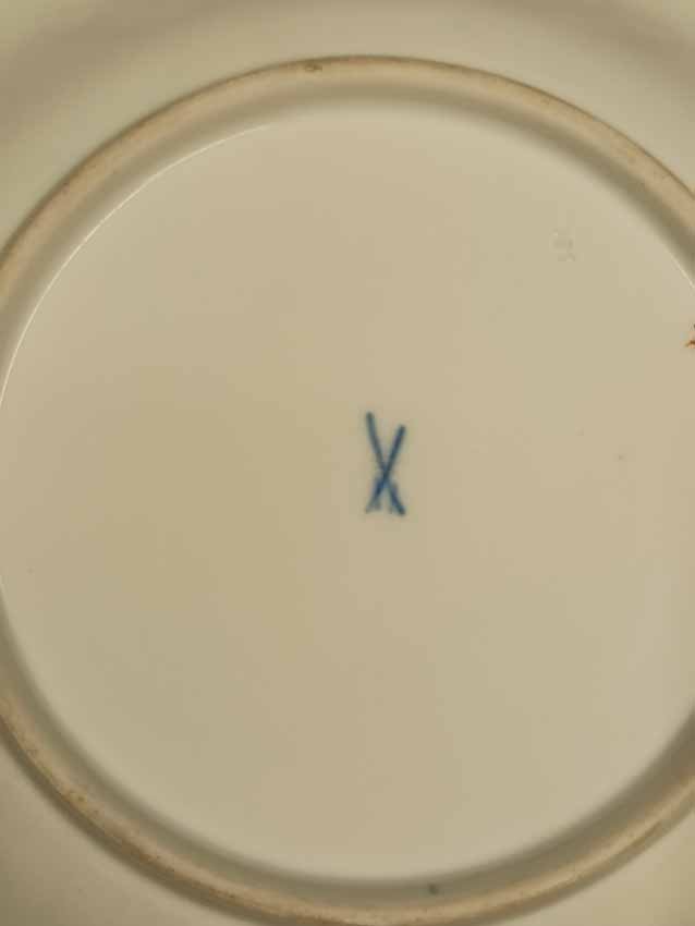 Sehr guter Zustand ohne Beschädigungen. Schwertermarke von Meissen, 2 mal gestrichen. D. 23 cm.