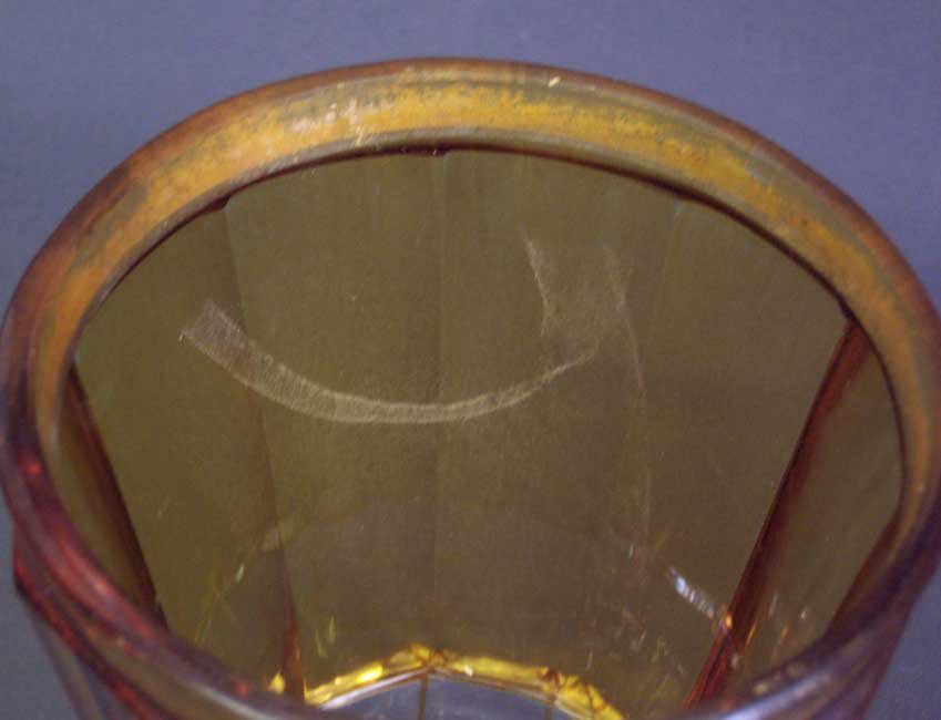 Glas ohne Beschädigungen oder Abplatzer. Vergoldung berieben, innenseitig an der Wandung eine streifige Verfärbung.