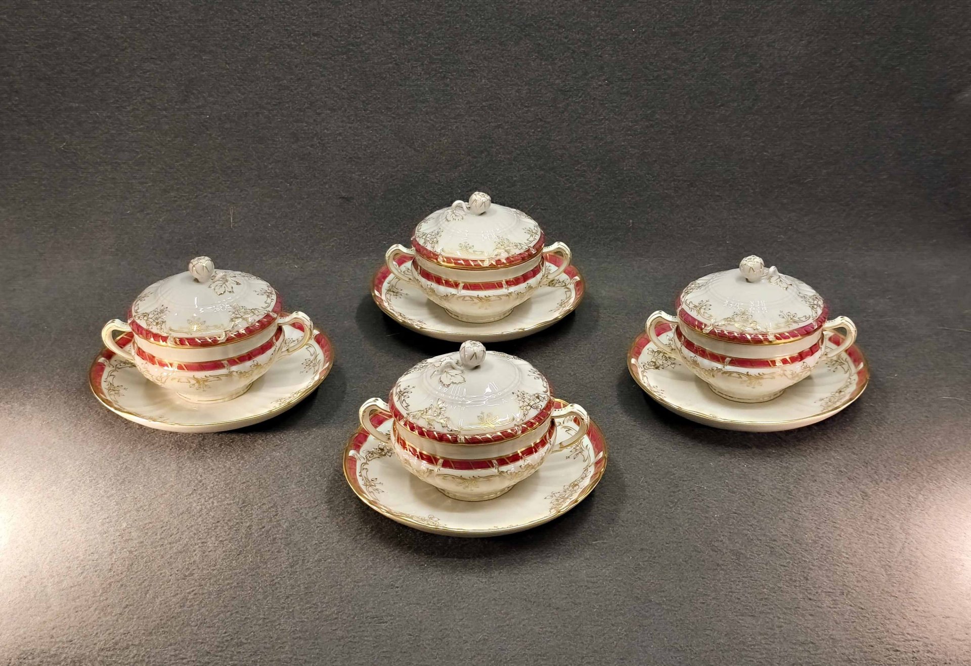 KPM Berlin, Vier Suppentassen mit Deckel, Königin von Holland, 1.Wahl
