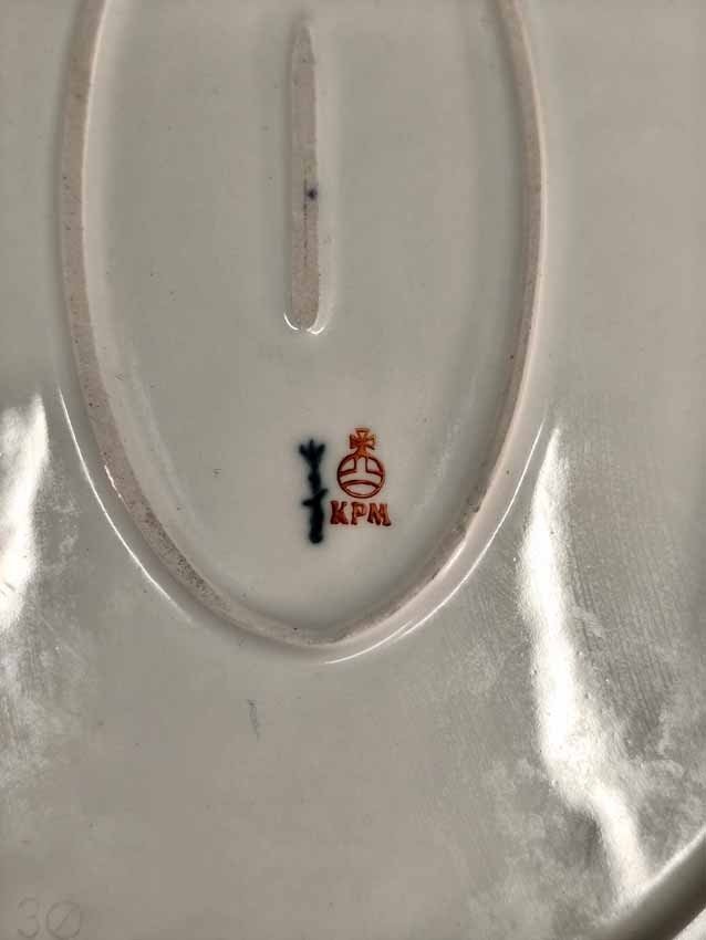 KPM, Große Platte L.42 cm, Königin von Holland, KPM Berlin, Rocaille Rot