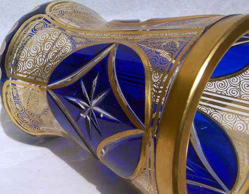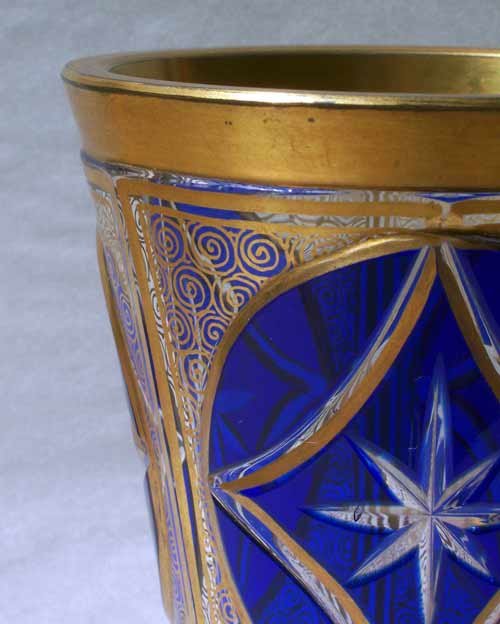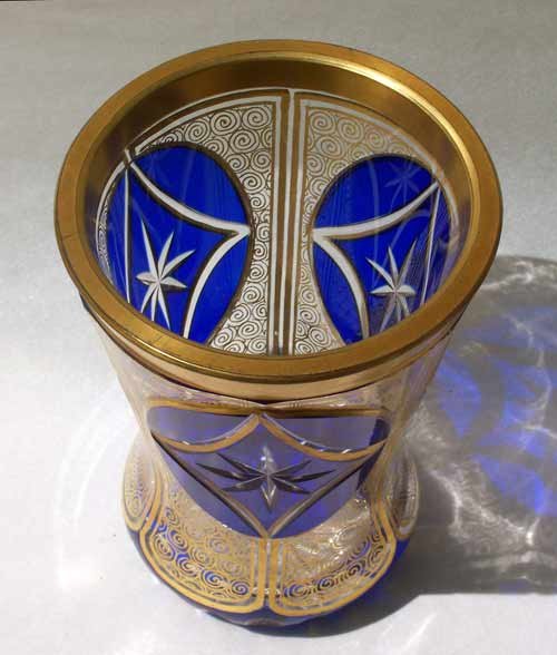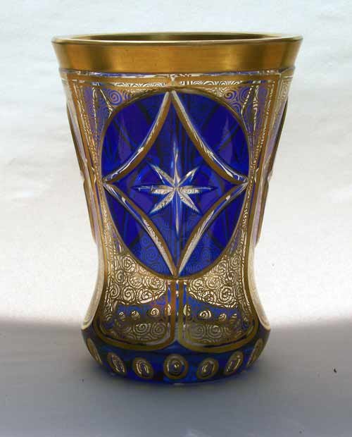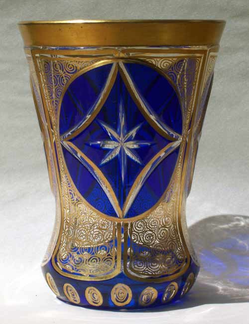 Becherglas 19.Jh. verm. Böhmen. Blau überfangen, Gold