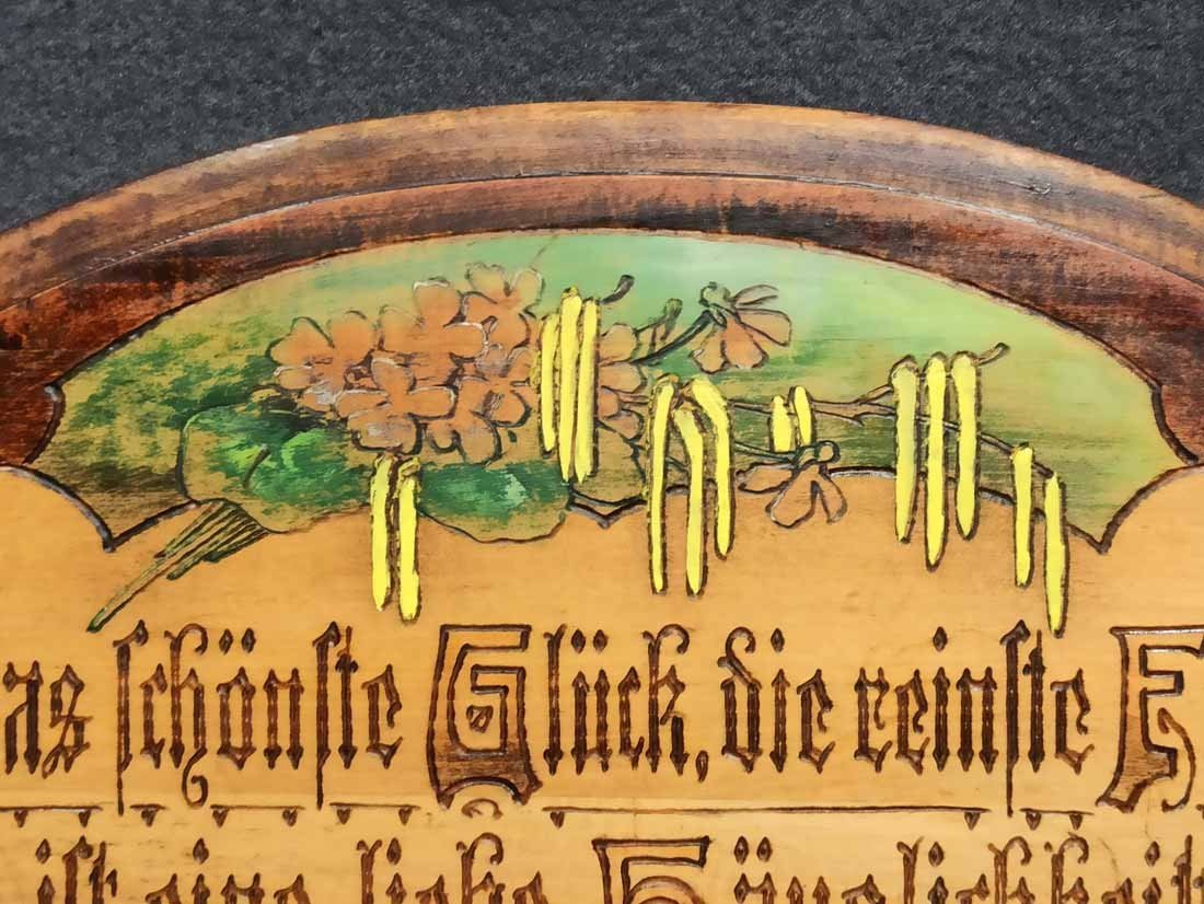 Bilderspruch, Spruchbild, Brandmalerei um 1900