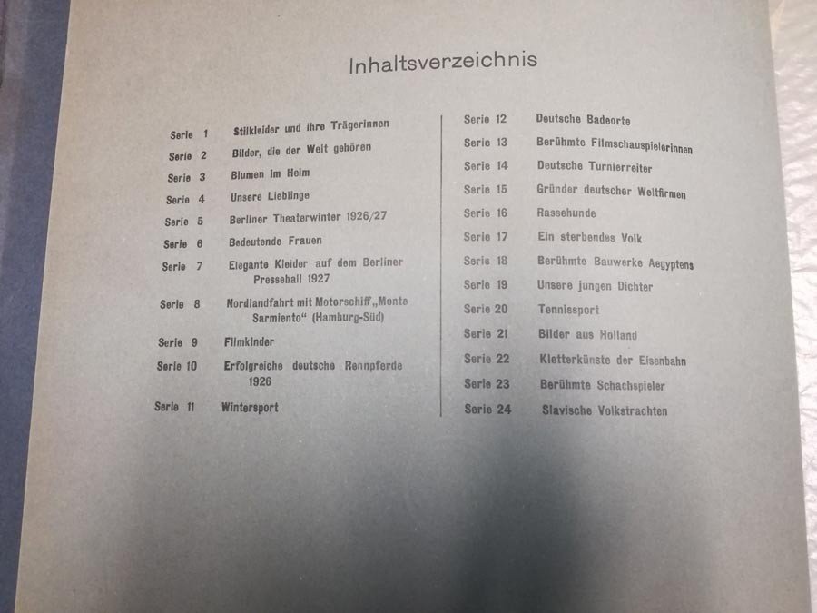 Guter Zustand, sauber. Die Ränder des Einbandes etwas knickrig sonst Einband i.O. , innen i.O. Bilder vorhanden, zwei "Berühmte Schachspieler" (Serie 23, Bild 1 und 3) nicht vorhanden. Alle weiteren Bilder vorhanden.